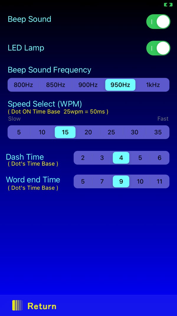 また音を消してLEDのみの設定も出来ますから光モールスの練習も出来ます。
